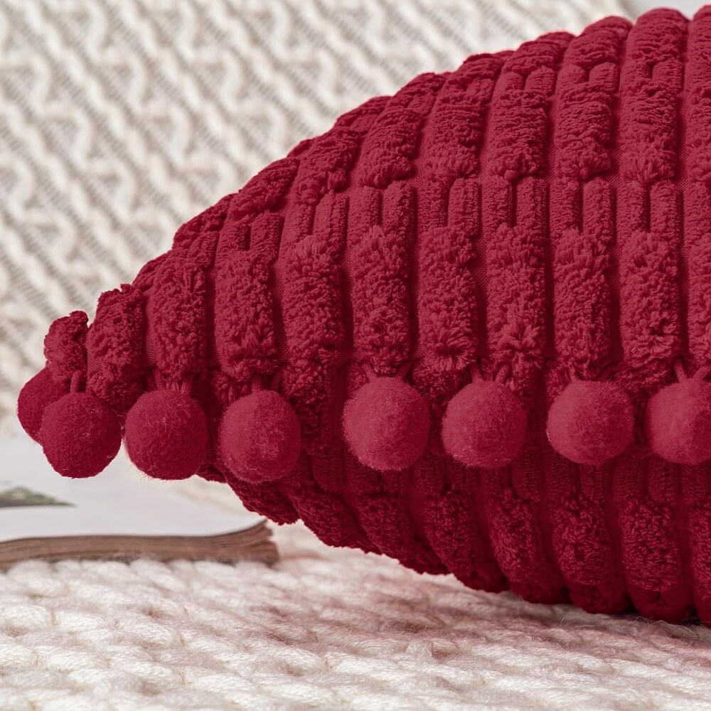 100% Corduroy EXQUISITE WORKMANSHIP: Each edge of the pillow covers adds cute pompoms, which is unique and adorable. The pillow cover is composed of a soft and comfy cordury fabric that fearures a cute and elegant boho stripe design. HIDDEN ZIPPER: Smooth hidden zipper is sewn on the edge so that your pillows are secure inside the cover with easy insertion and removal. It also helps to give the cover an elegant look. IDEAL DECORATION: The throw pillow covers presents itself as a great fit for your living room, bedroom, patio, lawn, porch, balcony, couch or sofa becoming great gifting option for close friends or families for several occasions. Suitable for Christmas decor. Christmas pillow covers add holiday atmosphere to your home. CARE GUIDE: The throw pillow covers are easy to care. It is recommended to hand wash and gentle cycle for machine washing with low tumble dry. Please note to not iron the cover. PACKAGE CONTENTS: The package includes 9PCS throw pillow covers. Please note that only covers are included in the package and not insert.